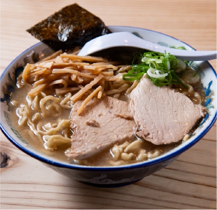 濃厚煮干しスープに極太ちぢれ麺独自のスタイルの一杯。