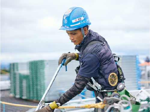 来日当初は、会話や方言(特に山形弁)に戸惑うこともあったが、「今はだんだん分かるようになって、現場の会話も楽しくなってきました」と話す。「とても親切にしてくれます」という先輩たちに支えられながら、鳶として現場での経験を重ねているハイさん。「いろいろな現場に行けるのも楽しいですし、仕事を覚えるのが面白いです」。今後は在留資格“特定技能2号”への移行を目指し、「できればずっと日本で働きたい」と意欲を見せる。