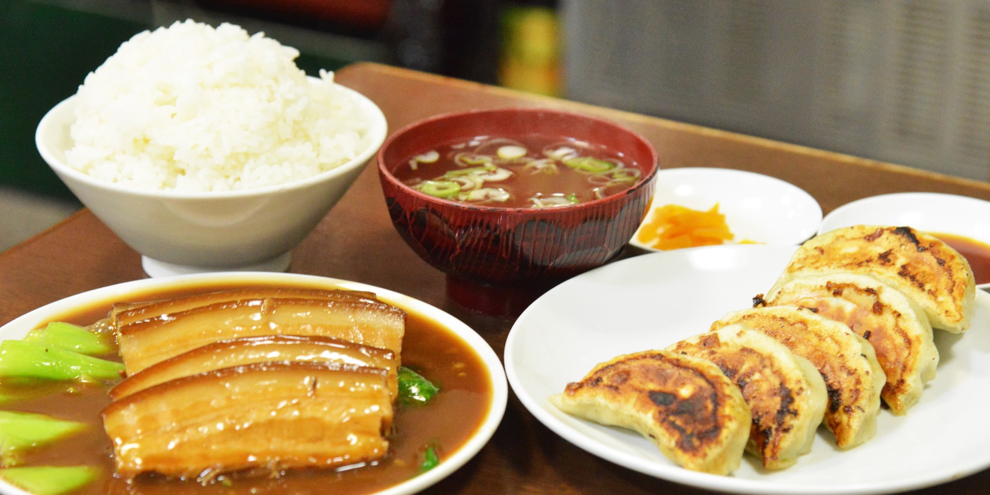 ことに人気となっているのが、杭州の伝統料理であるトンポーローで、常連客が絶賛する一品。日本風にいうと豚の角煮に近いこの料理は、豚のバラ肉の塊を茹でてから油で揚げ、厚切りしたのち、醤油、紹興酒、八角、山椒などを合わせた汁で、とろりとやわらかくなるまで煮るのが特徴だ。醤油の旨みと八角などの爽やかな香りがバラ肉とバランスよく調和していて、白いご飯との相性も抜群だ。このほか、大ぶりでジューシーな餃子、絶妙な火加減で炒めたチャーハンなど、朱さんの匠の技が生きた本格中華料理がたっぷりと味わえる(2019年取材)。