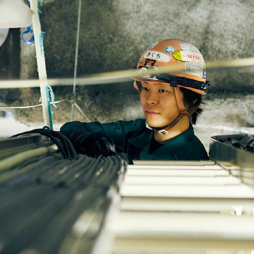 「入社してみたら、高校で習った座学と現場では全く違っていました。基本的な結線のやり方とかには苦労しませんでしたが、図面通りに精緻に仕事をこなしていく上で必要な施工そのもののルールや手法については、まったくの初心者。ゼロから勉強のし直しでした。うちの会社には独特の教育体制があって、新入社員はみな、兵庫にある研修所で研修を受けるんです。現場で必要な資格を取得するためです。ここでの授業は超スパルタなんですが、楽しかったなあ。あの研修で得た知識や技術が、今の僕の大切な基礎になっていると思います」。
