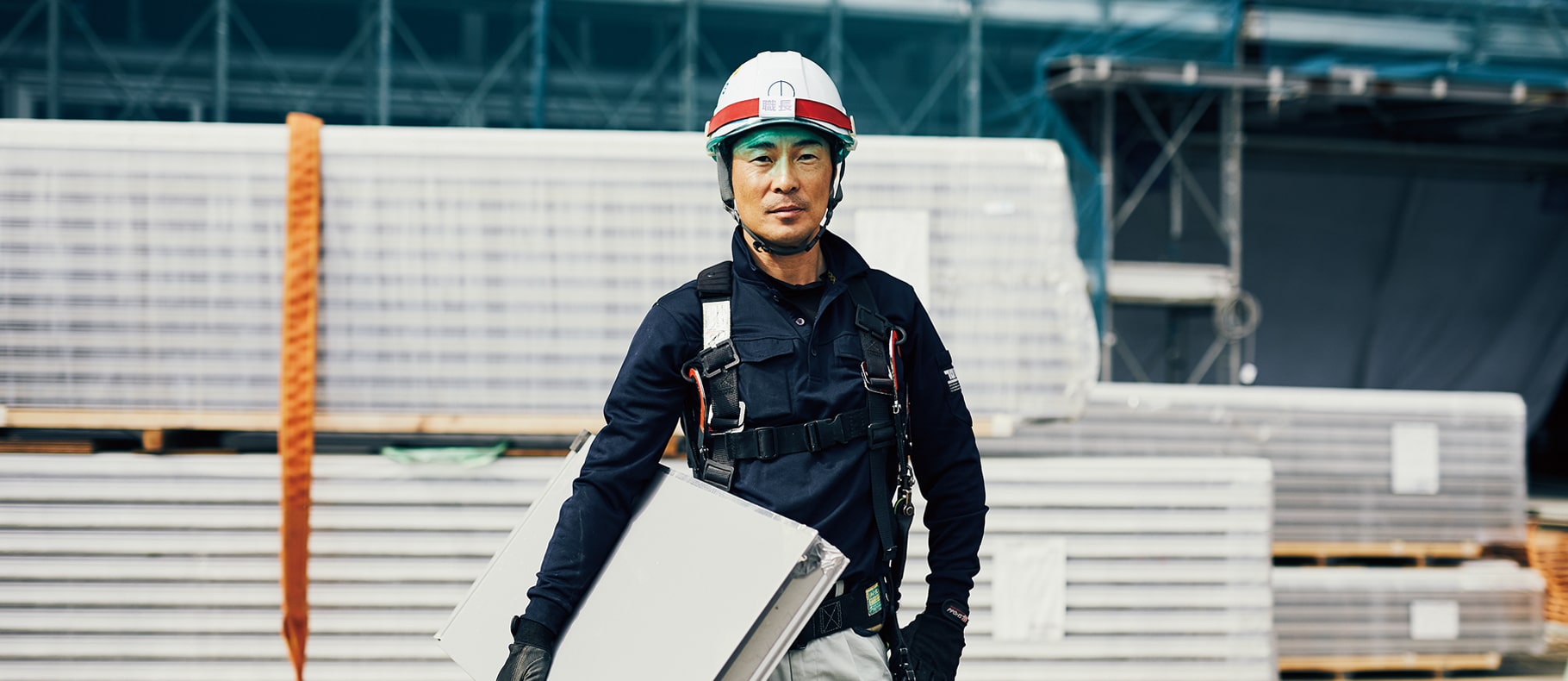総合的な元請けの管理から、外装専門会社の管理へ。同じ業界ではあっても、その内容は大きく違ったといいます。「これまでの仕事からさらに一歩も二歩も踏み込んだ、深い専門知識が必要ですね。そしていま、外装工事の現場では、設計段階では分からない、図面にも描かれない部分を現場で発見し、補っていく技術提案が行われています。私がこの会社に惹かれたのも、そういった提案ができる人たちだったから。職人としてのプライドと技術で、図面を超えたクオリティを実現する“人”。そんな“人”に、惚れたんです。実は私、元々は医療事務の仕事をしていました。そこから、建設の仕事に関わりたくて、ガードマンにウレタン吹付、足場掛け、いろんな工種を経て前職の現場管理、そして今の現場管理に就いたんです。正直、40歳での転職は怖くもありました。でも、自分が本気でやる気と興味を持ったなら、恐れず進まなければ。そうすることで、自分の道が開かれていくんだと思います」(2017年取材)。