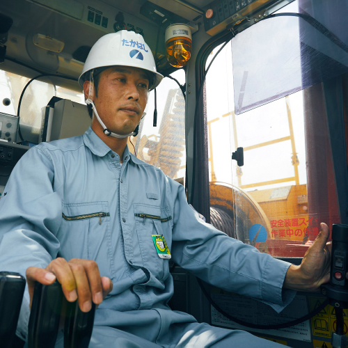 高校の就職活動時に、恩師から現在の会社を紹介され入社を決めた高橋さん。「最初の印象は、ただただ“デカいな”と。乗ってみてすぐに“簡単な仕事ではないな”と思ったけれど、いまもそれは変わらないです。むしろ、熟練度が上がれば上がるほど、乗車するクレーンが大きくなればなるほど、その思いは強まります。クレーンって、自分の気持ちが運転に出てしまうんですよ。イライラしてたり、焦ってたりするとまったく思い通りに作業が進まない。その時は本当に危険ですよ。なにしろ、あの豆粒みたいに見えるフックでさえ、ひとつ370kgもあるんですから。心と時間に余裕をもって、冷静かつ意欲的に運転すれば、丁寧な作業がちゃんとかたちになる。一緒に働く他の職人さんにも、それが伝わるんでしょうね。褒められたり心配されたり、現場はとてもコミュニケーション豊かですよ。…私たちの仕事は常に危険と隣り合わせで、同じ一日は二度とない。だからこそ、日々現場に入り、一日が終わった時。そして、その一日一日を積み重ねた現場が完成し、クレーンを解体して去る時。その時に、“ああ、無事に終わった”という大きな達成感を得るんです」(2017年取材)。