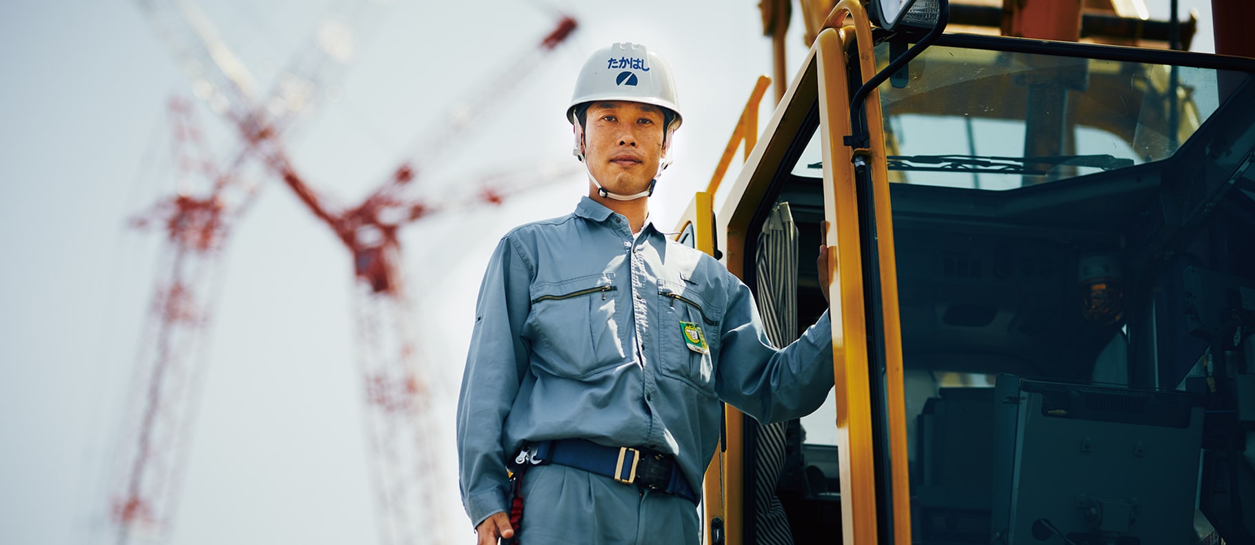 高校の就職活動時に、恩師から現在の会社を紹介され入社を決めた高橋さん。「最初の印象は、ただただ“デカいな”と。乗ってみてすぐに“簡単な仕事ではないな”と思ったけれど、いまもそれは変わらないです。むしろ、熟練度が上がれば上がるほど、乗車するクレーンが大きくなればなるほど、その思いは強まります。クレーンって、自分の気持ちが運転に出てしまうんですよ。イライラしてたり、焦ってたりするとまったく思い通りに作業が進まない。その時は本当に危険ですよ。なにしろ、あの豆粒みたいに見えるフックでさえ、ひとつ370kgもあるんですから。心と時間に余裕をもって、冷静かつ意欲的に運転すれば、丁寧な作業がちゃんとかたちになる。一緒に働く他の職人さんにも、それが伝わるんでしょうね。褒められたり心配されたり、現場はとてもコミュニケーション豊かですよ。…私たちの仕事は常に危険と隣り合わせで、同じ一日は二度とない。だからこそ、日々現場に入り、一日が終わった時。そして、その一日一日を積み重ねた現場が完成し、クレーンを解体して去る時。その時に、“ああ、無事に終わった”という大きな達成感を得るんです」(2017年取材)。