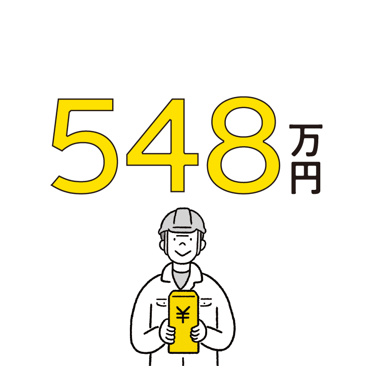 収入面でも期待できる業界へ。技術職を含め建設業全体で1年を通じて勤務した給与所得者の平均年収は、男性597万、女性347万で、男女ともに全産業平均を上回ります。さらに資格や経験で収入アップも目指せます。→国税庁「民間給与実態統計調査」