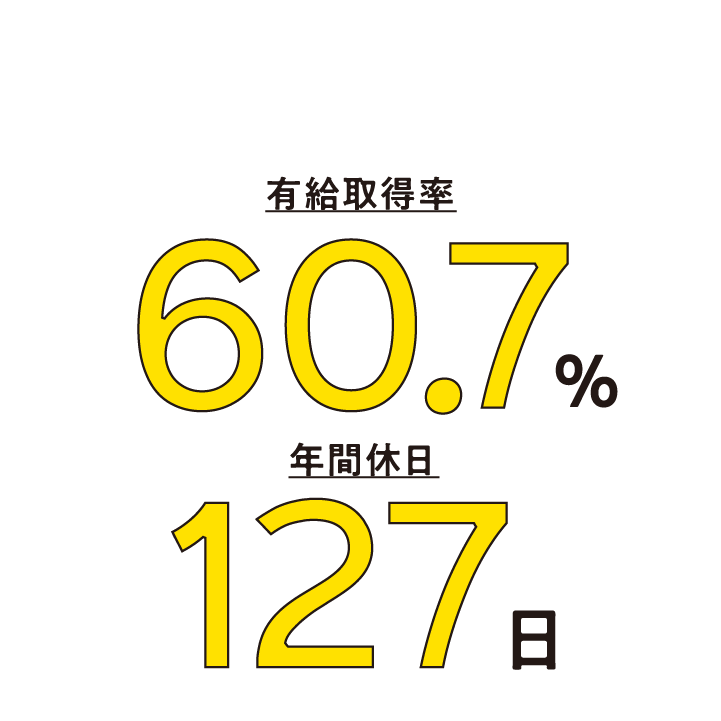「休日が少ない業界」から変身中!人手不足や天候により工程が左右されやすい建設業では、ICTやDXを活用した業務の効率化に取り組んでいます。生産性を維持しながら、週休2日の定着や有給休暇の取得率向上を目指しています。→厚生労働省「勤労条件総合調査」、厚生労働省「毎月勤労統計調査」