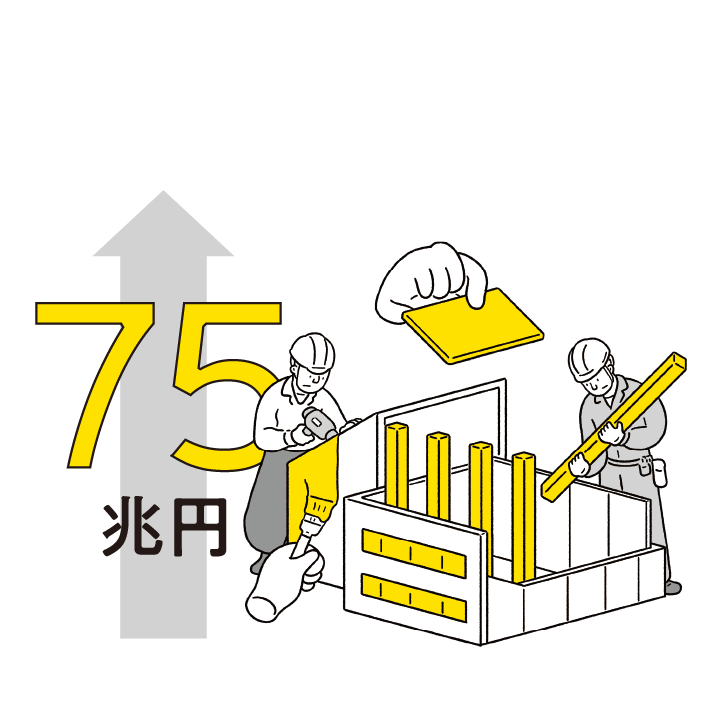 さらに拡大の兆しあり。都市再開発やデータセンターの新設、また災害対策やインフラ整備などにより建設需要が高まっている現在。2025年度の建設投資額は前年度より2.5%増加し75兆4,500億円となる見通しです。→国土交通省「建設投資見通し」